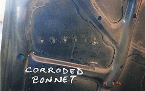 Without the blue gadget, the bonnet gets it. Just look at the corroded spots on the bonnet.